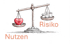 Schauen wir uns die beiden Zeichnungen links an. Wie wahrscheinlich ist es, dass wir mit unserer Schätzung sowohl beim Risiko als auch beim Nutzen auf Anhieb ins Schwarze getroffen haben? Also den tatsächlichen Wert korrekt eingeschätzt haben? Nüchtern betrachtet wohl eher unwahrscheinlich.